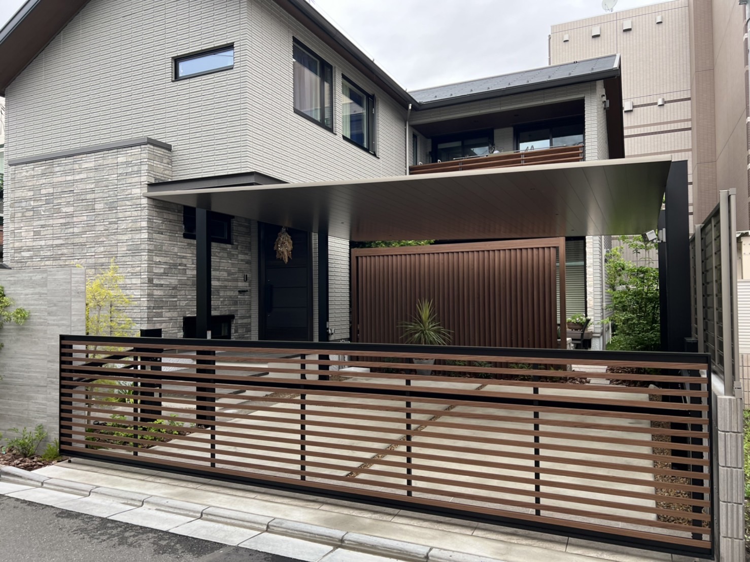 LIXIL「カーポートSC」×「プラスG」で創る、美しさと鉄壁の防犯を兼ね備えたクローズド外構